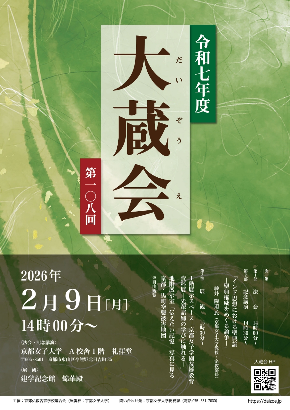 京都仏教各宗学校連合会は、京都市内外の仏教各宗派が設立する学校の連合会で、1906年(明治39年)に代表者が集結したのに始まる。爾来、文化財保護の啓発と仏教精神の浸透を目指して「大蔵会」を開催し2015年(平成27年)には第100回を迎えた。